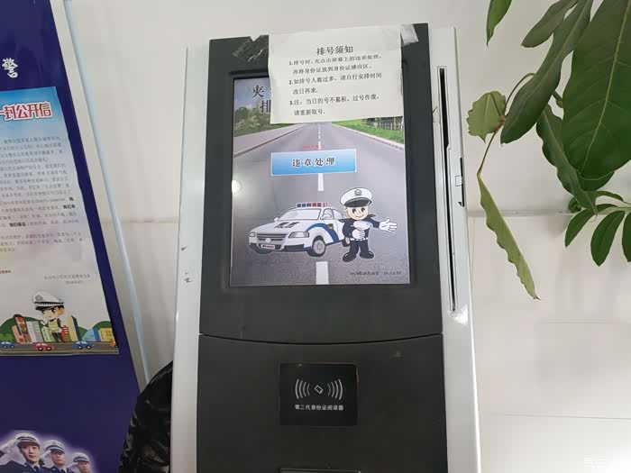 进入大厅后,第一步就是在这个机器上拿一张排队的业务单,现在拿这种排队单必须要用二代身份证进行扫描一下方可取走排队单