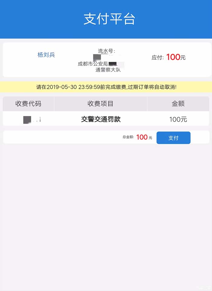 根据提示,我直接扫描了交警队的付款码后,一步一步在网上缴了罚款