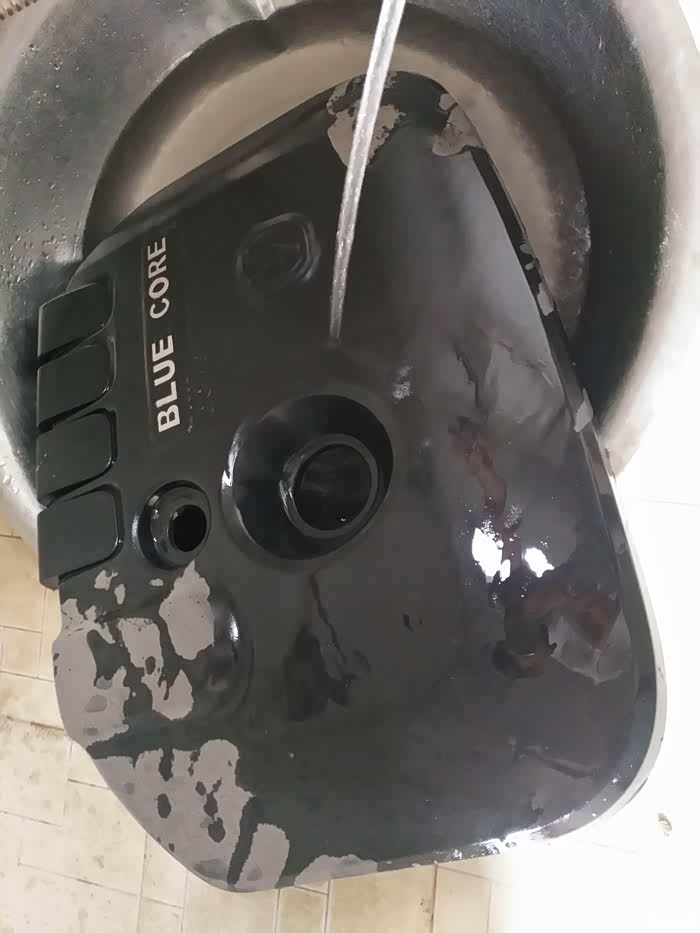 将取下的发动机盖直接用水进行冲洗,用毛巾擦拭