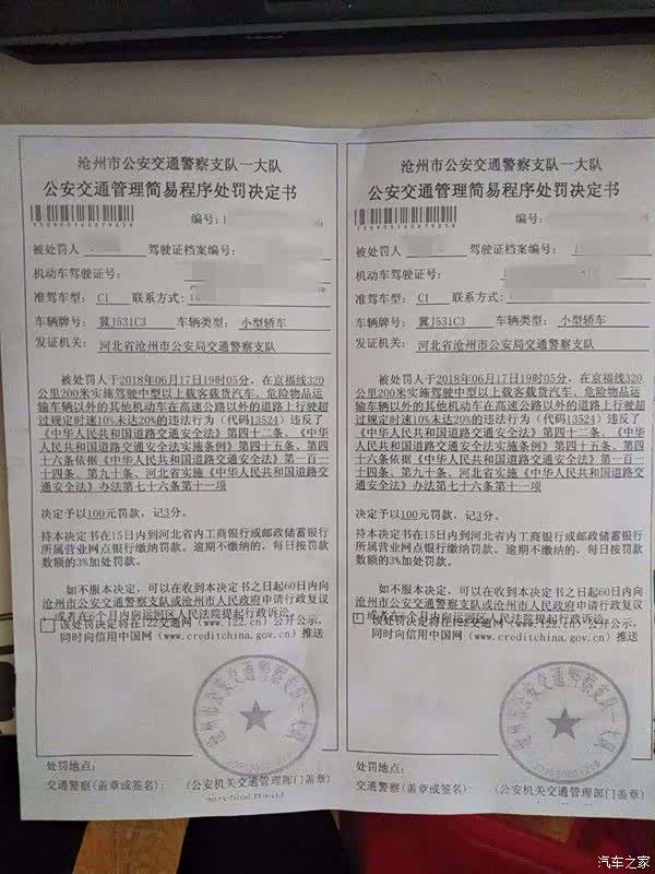 处罚决定书,才明白超速百分之10