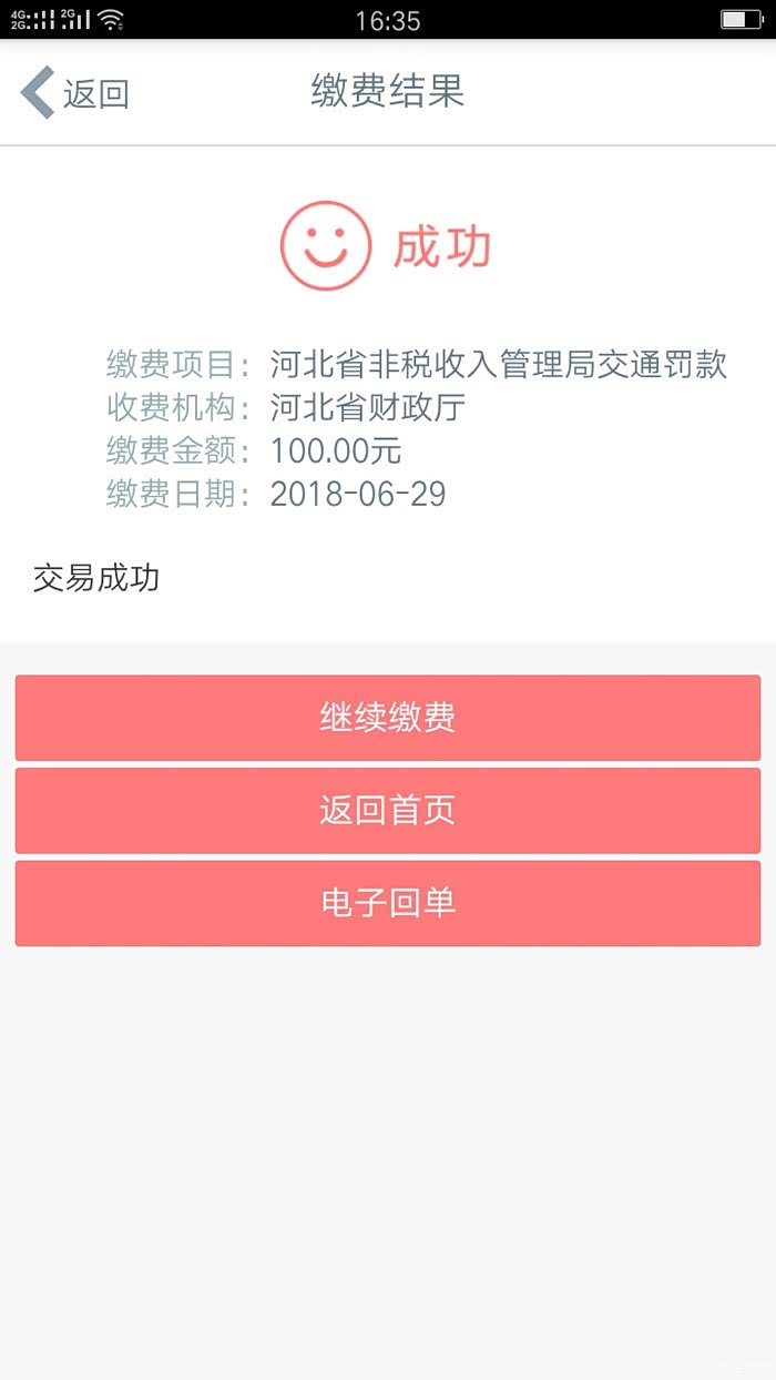 缴纳完毕,100块就这么没啦