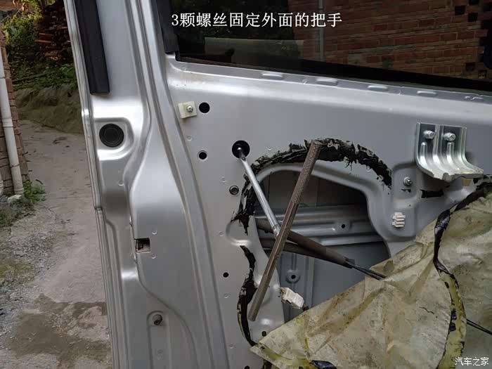 车门把手一共三颗螺丝固定。