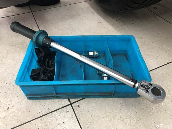然后自然就是将换好的车轮装车了,这里要注意的点是要按照画五角星的顺序上紧螺丝,还不能用气泵,而是要用扭力扳手,保证螺丝上紧的力度一致。(仍然是师傅原话复述,不保证两天后我的记忆有没有走样)