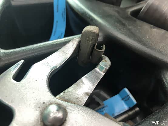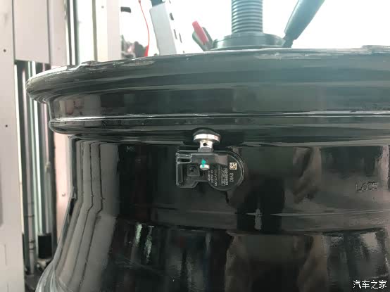 我还没看清楚咋回事儿,整个轮胎就扒下来了,可以看到里面的胎压监测模块,前面小酷的屏幕显示胎压不正常就是靠这个东西。(当然仍然是师傅告诉我的)
