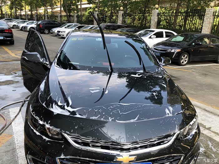 洗车过程就不用怎么说了,那个桶倒点洗车水蜡,打出泡沫,拿水枪冲洗车身,然后拿洗车海绵由车顶往下洗车,最后再洗车轮。为什么由上往下,因为这个可以防止由下往上有石子落下擦伤车漆!