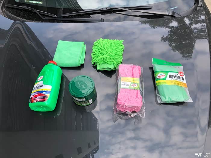 洗车打蜡之前拍一张所用的材料,龟牌一套,龟牌洗车水蜡,龟牌极限蜡,送的洗车海绵,擦车毛巾,还有一个套在手上擦车轮廓的东西,不知道叫什么,但是特别好用!(还有一套打完蜡可以擦掉蜡的龟牌抛光毛巾15元)