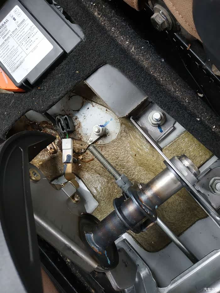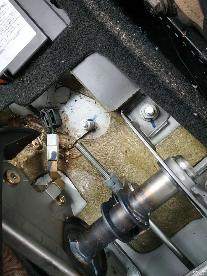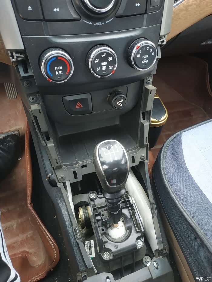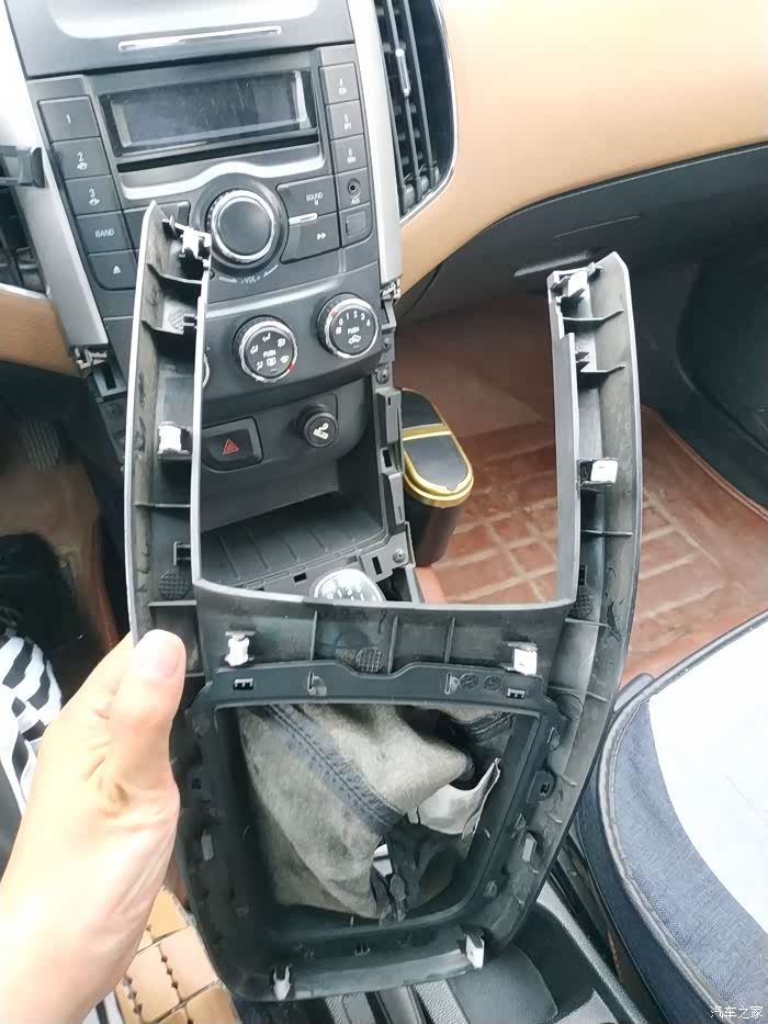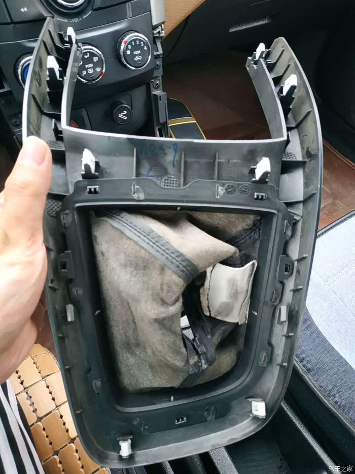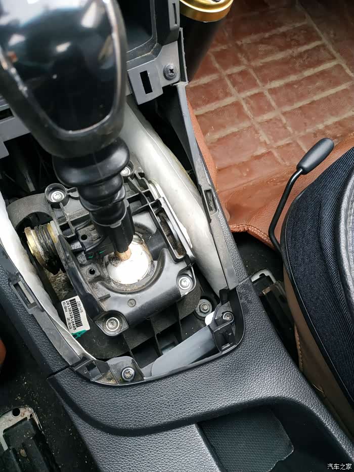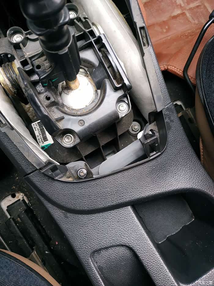 先把档位周围的卡扣撬开,一共4对卡扣,注意用力哦,不然很难打开。打开后,就很简单了,前面两个螺丝,中央扶手旁边各一个螺丝,搞定!12#扳手将拉线紧紧,OK!!顺便将卸下来的中央扶手清洗干净,崭新如初,棒棒哒!