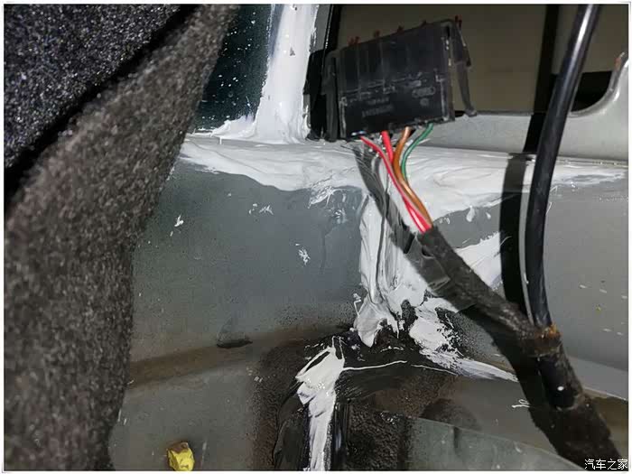 此外,师傅还特意在后备箱里面用大众原产的白色钣金胶,封了一下有缝隙的部位,做到内外双重防护。