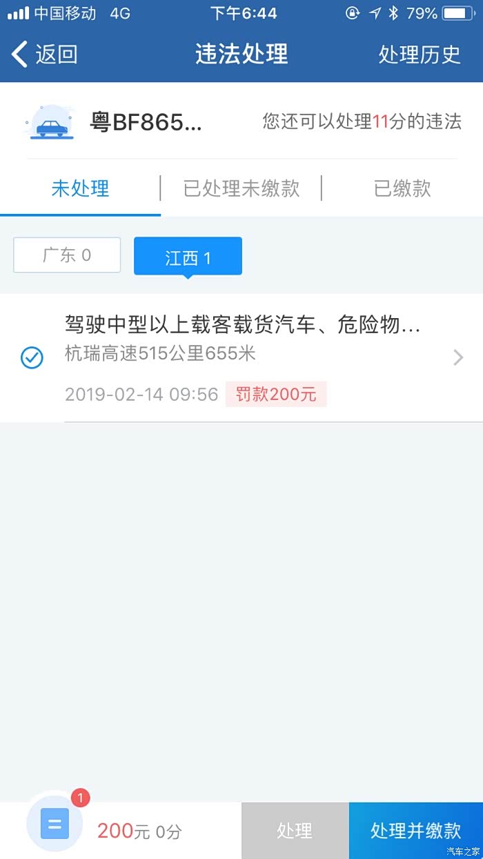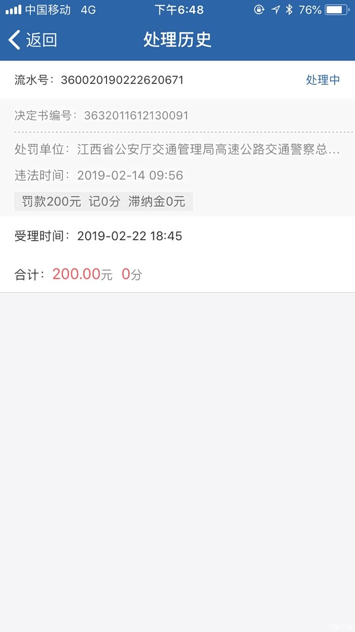 我选择的交管12123处理的,查询到违章纪录,点击进去处理