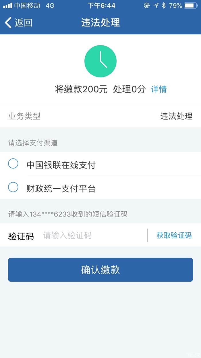 根据提示操作就会成功扣款,成功的处理完违章记录,是免密支付的,直接银行卡扣款