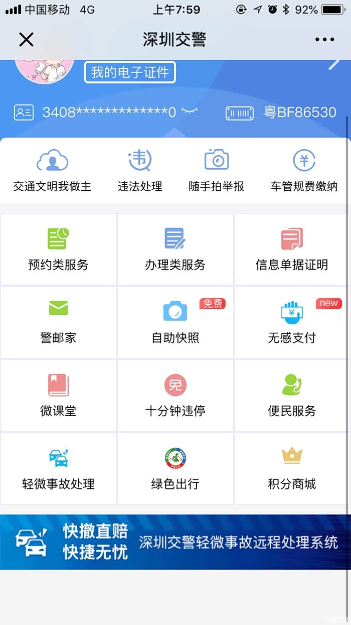 微信也可以关注深圳交警,绑定机动车驾驶证等信息
