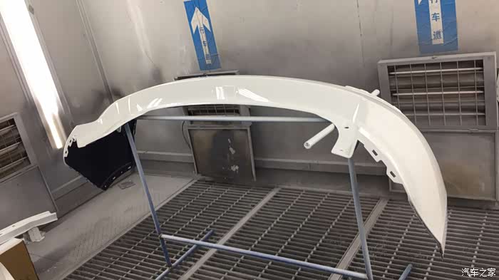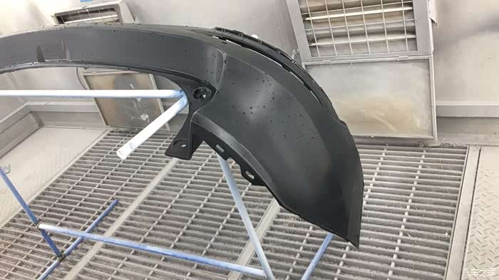 喷完漆后的后保险杠外罩。