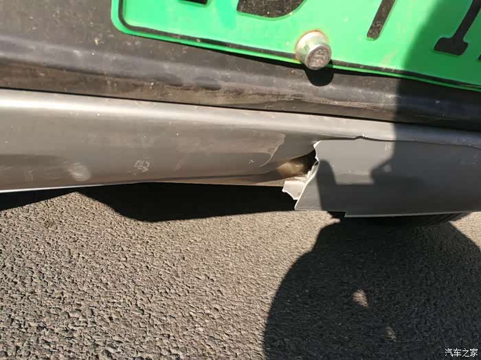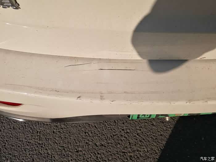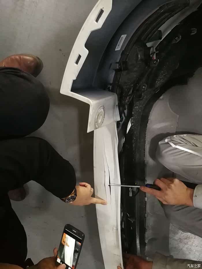 后保险杠外罩裂痕放大拍照,他们叫扩损。