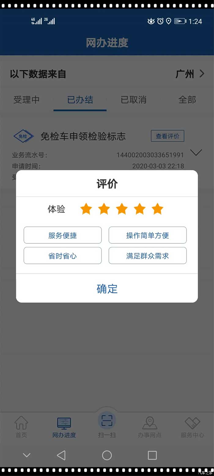我的爱车是2018年4月份购买的。到至今差不多二年,之前也是有了解这个流程。怎么办理,怎么申请。后来前几天收到了广州交警发来了一条短信,可以在有效期的90天到公安交通管理部门申请。如有发生事故必须到安全技术检验机购进行检查。应该是看车子有没有损伤之类。但是这个条件我是没有。也咨询了相关的大众一家的车友,有些在购买的保险公司申请,有些在微信上办理,有些是开着车去车管所办理申请。后来自己就上交管123APP平台看到可以在网上申请免检车申请检验标志。