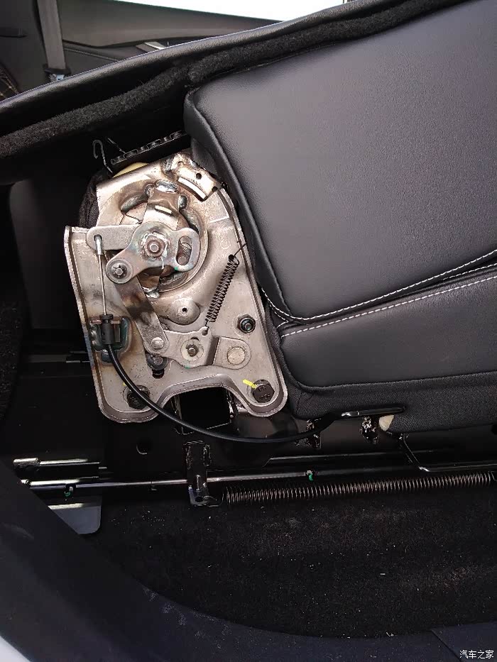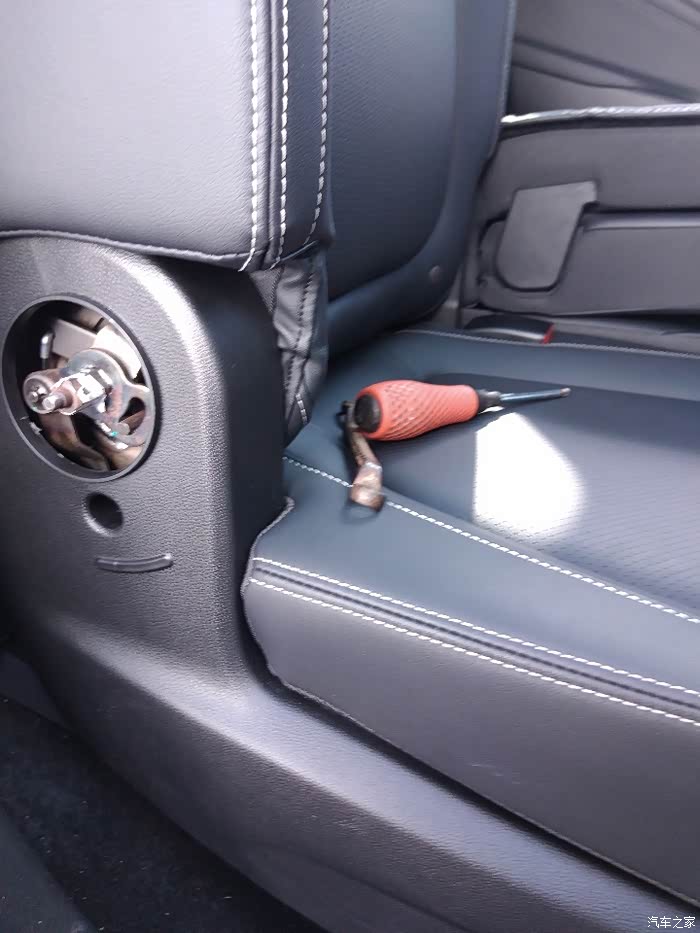 有车友先前讨论过G50座椅椅背调节放倒的问题,今天下午开始,我琢磨怎么解决这个问题,首先感谢昨天发帖介绍的防爆亮光手电筒。在车上探寻拆解第二排座椅,G50隐私玻璃的作用,车内,先找寻G50原车带的调节器。然后把塑料件琢磨琢磨怎么拆,里面有塑料卡扣,不要用蛮力,先找到盖板,拆后,露出螺丝,直接十字螺丝上去旋转开,然后拿出转角塑料件,露出庐山真面目,现在发现单边第二排座椅,有个金属卡扣,和另一块厚铁片卡死了,就翻折不了太大角度。