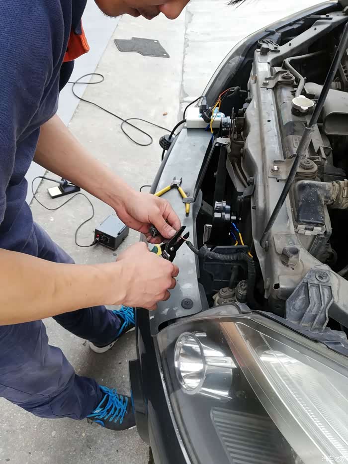师傅接线很细心,最后还用焊丝融焊接线处,这活还是相当扎实滴,一般去其他店都是用胶带一缠就完事了,此处再次点赞