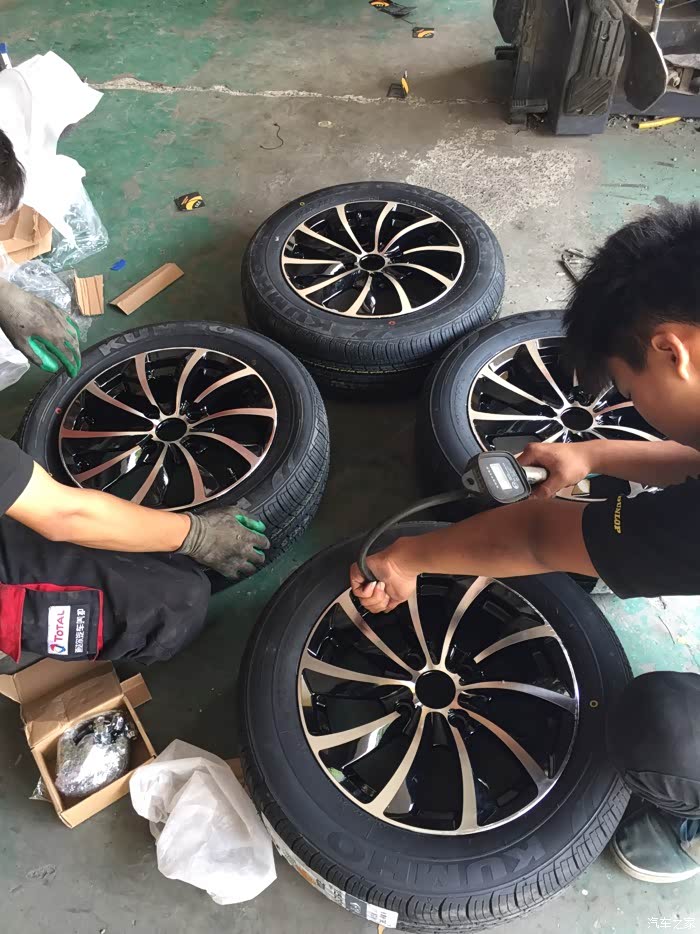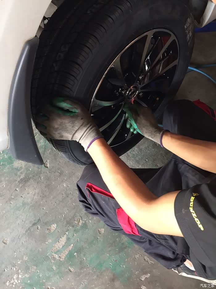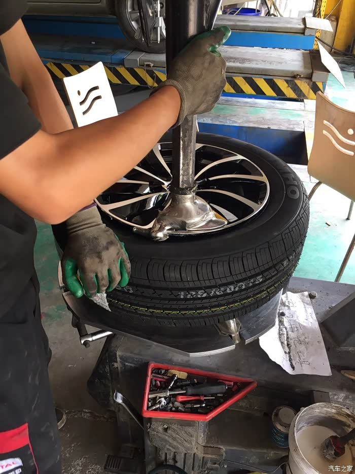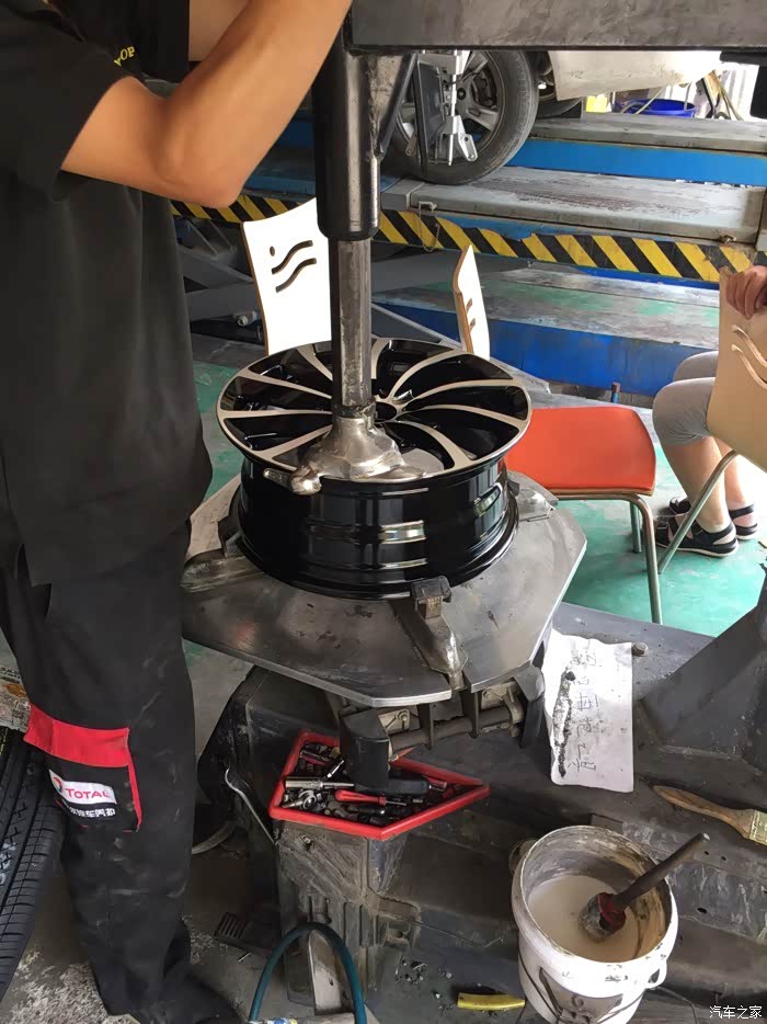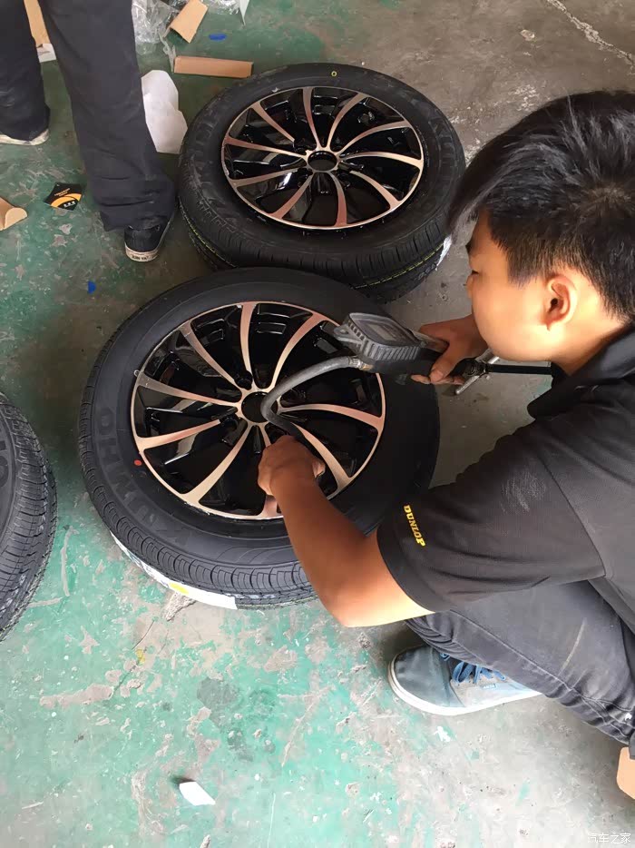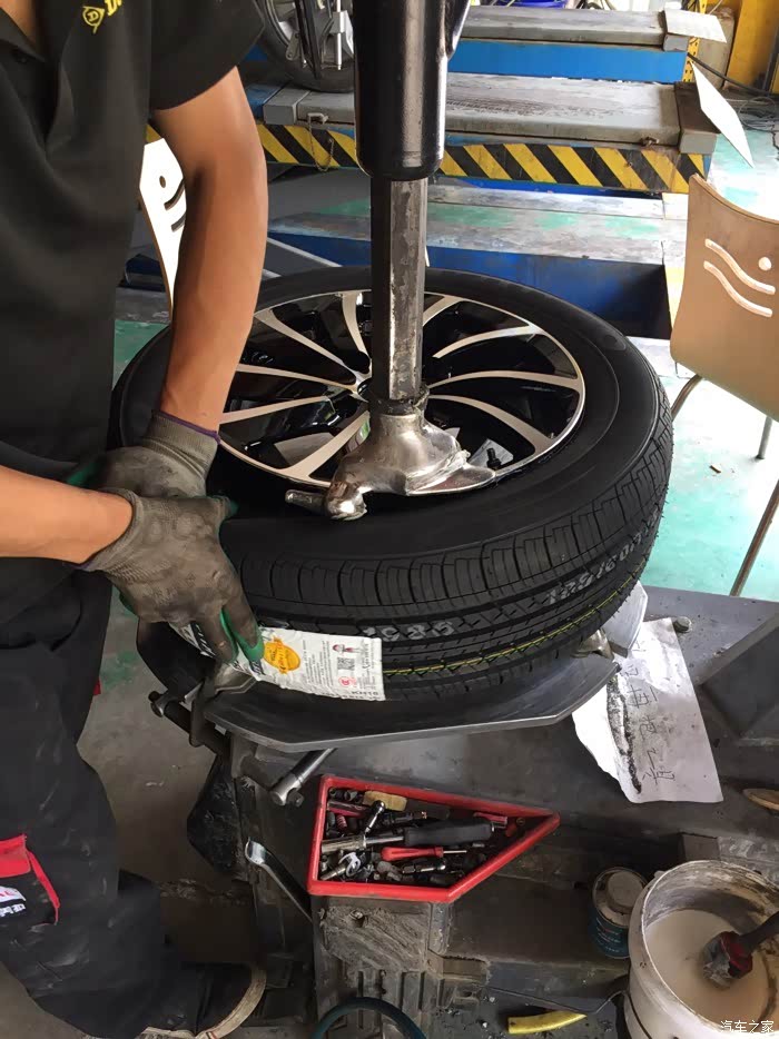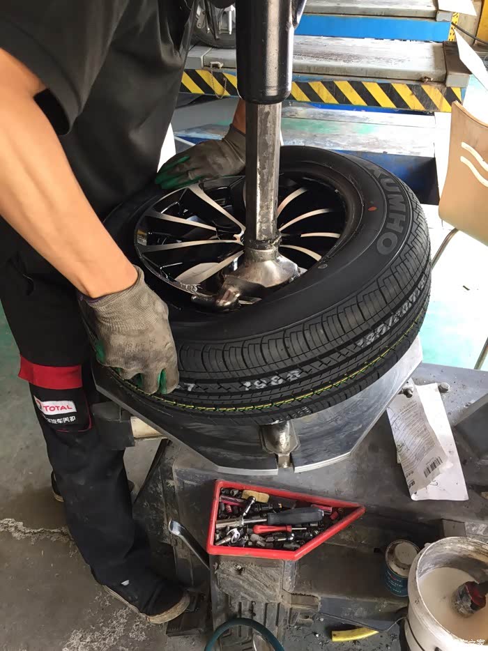 提到货以后火速的赶往家附近的修理店,询问了一下价格,四个轮胎?动平衡=150元,不知道贵不贵,主要是太着急了赶路,也没怎么跟老板多砍价。换就换吧!小面是师傅换轮毂,轮胎图片,6p拍的,还算清楚。