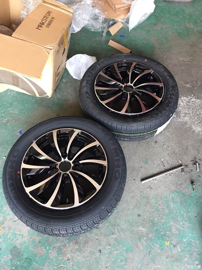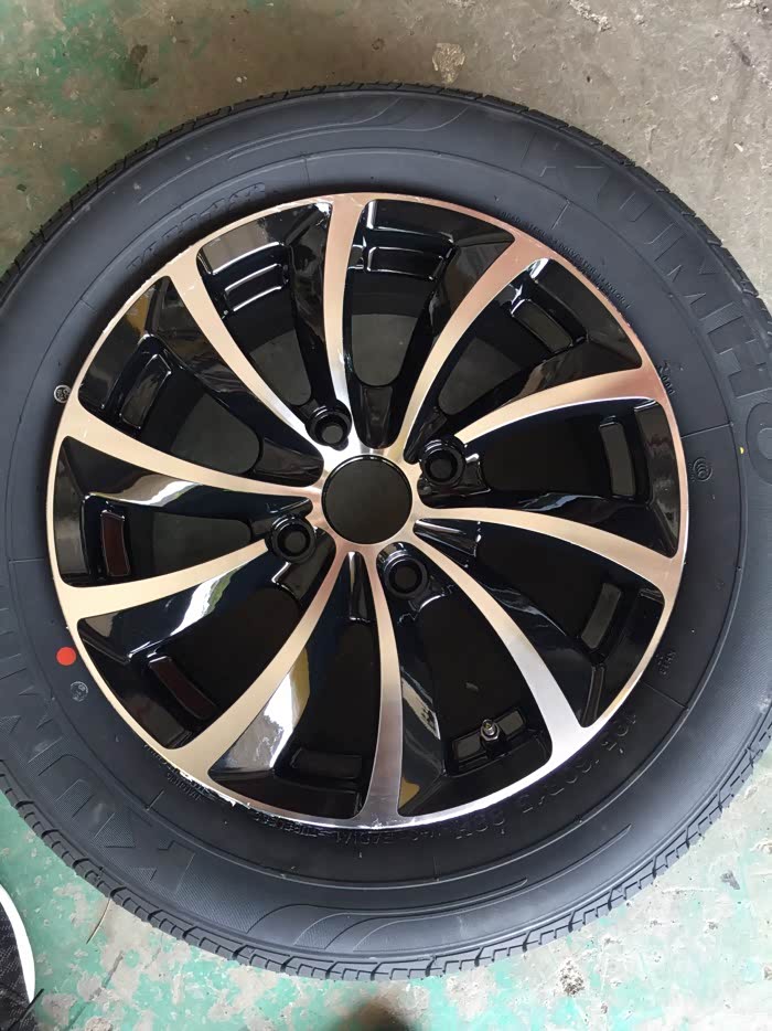 某宝买的15寸轮毂,某东买的轮胎4条胎800元,锦湖的轮胎,现在坐等到货啊!到货立马上作业。