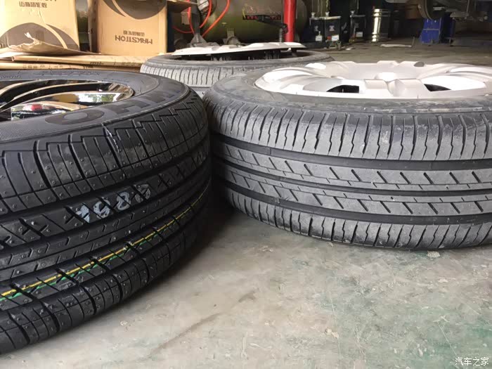 新旧轮胎对比,大了不少。