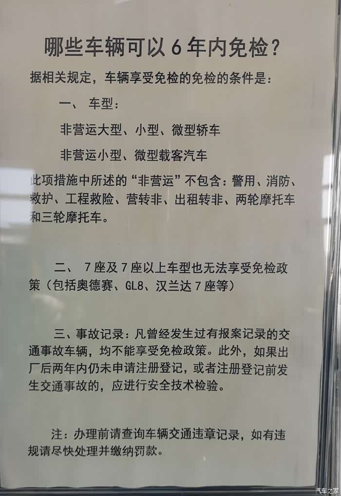 3、大型营运类车辆:必需一年一检,车龄超越10年为半年一检;