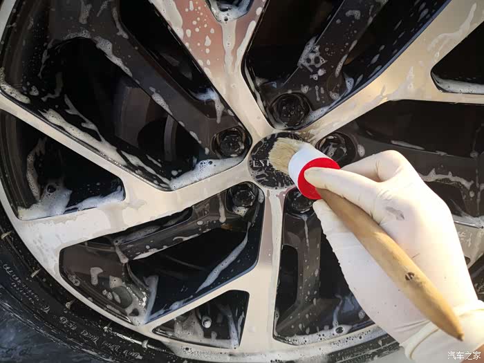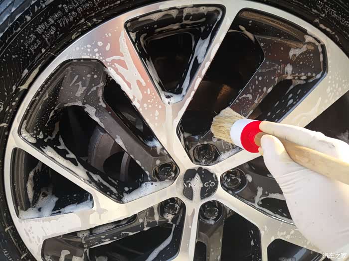 PA流挂期间 可以对轮胎轮毂进行清洗,准备工具:轮胎轮毂清洁剂、细节刷、轮胎刷