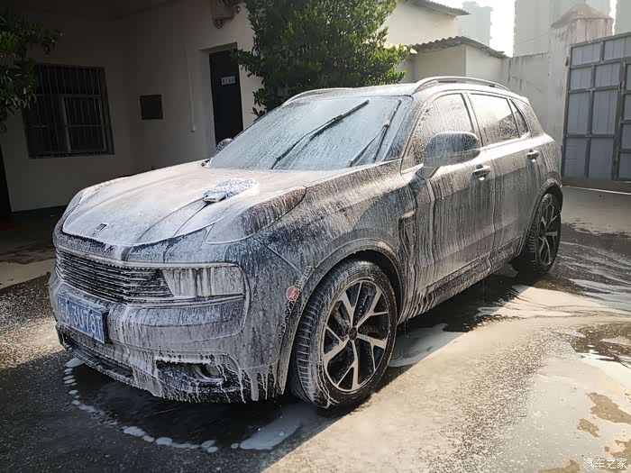 全车泡沫覆盖,等待5分钟左右 冲掉