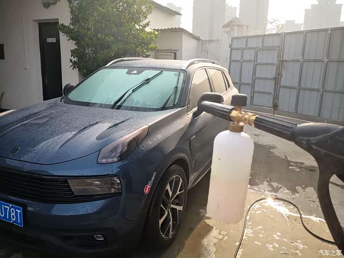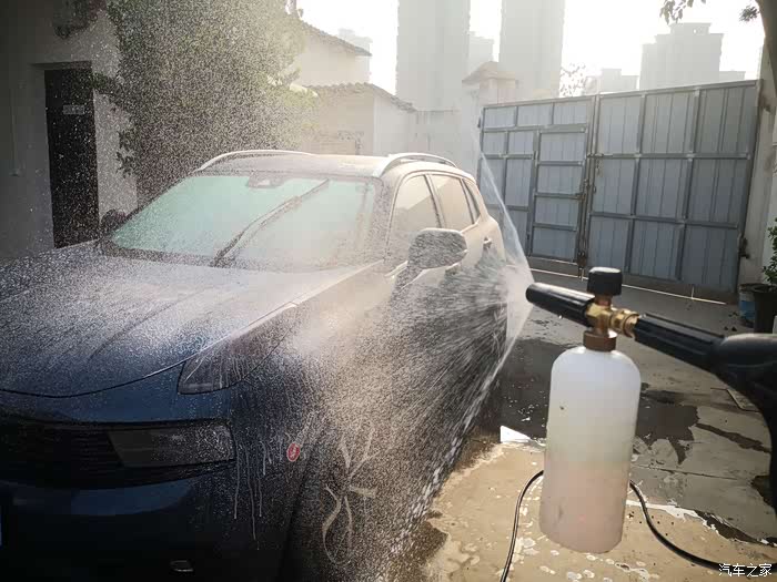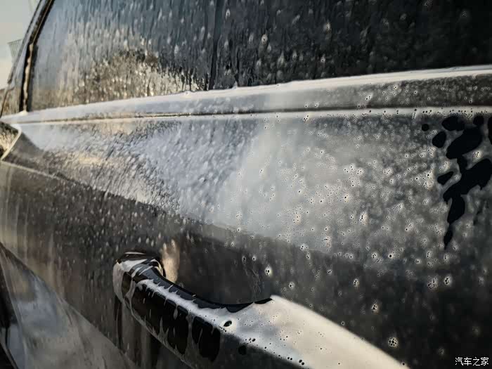 第二次泡沫,使用专用洗车液进行泡沫覆盖 我一般是半边车身喷泡沫然后用洗车手套进行车漆清洁