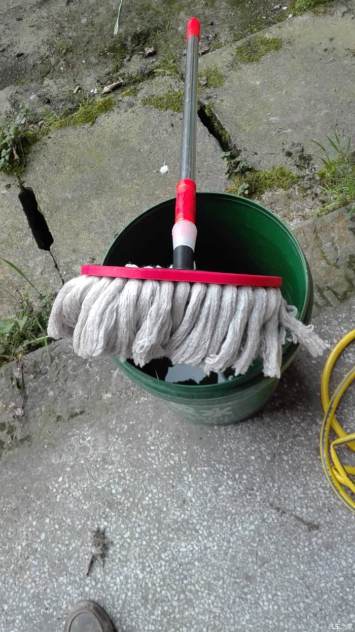 车四周用水冲一冲,打湿后,用拖把用洗车液拖一拖就可以了。
