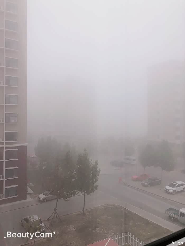 从楼上望去一片迷雾!