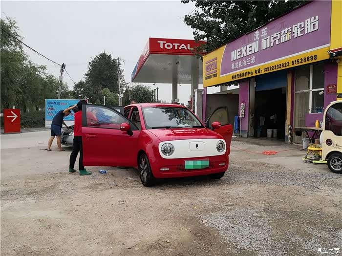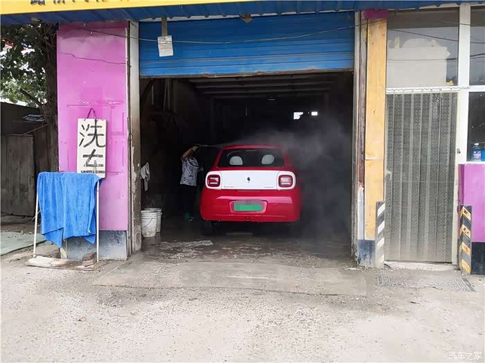进入洗车房洗车,R1的尺寸看着还是非常小巧,感觉我都能在洗车房里调个头。