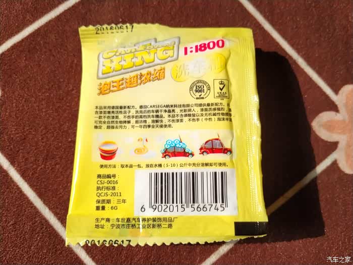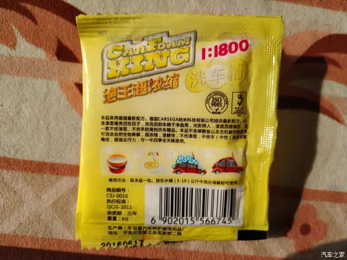 开始我就抱着试一试的态度,就购买了一些,用过以后感觉还是不错的。这个产品采用了德国CARSEGA纳米科技有限公司提供的最新配方,内含漆面增亮活性因子,洗完以后的车辆干净晶亮,光彩照人,漆面质感强烈。是一款不伤漆面、不伤手的高档洗车产品。这个产品不含磷酸盐以及无机碱性物质等可完全自然生物降解,超浓缩,溶解快不伤漆面,泡沫丰富稳定,超强去污力,可一年四季全天候使用。因此,我在用了以后,从性价比来看还是比较不错的,所以,我建议大家对这个产品。可以试一下,如果说是高档车,那就另当别论了。另外还要告诉大家一定要选择正规产品