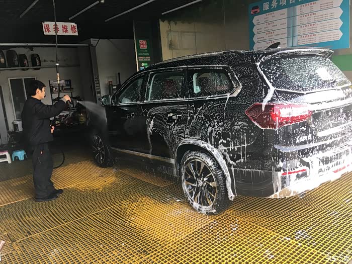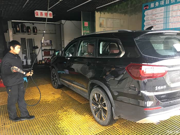 我买的是T5L七座版豪华型,整车尺寸z足够大,虽然定位中型SUV,但是站在车前确实很气派,洗车的时候,担心车会刮到,所以开进去的非常的小心,毕竟是新车,刮到可就不值得了。