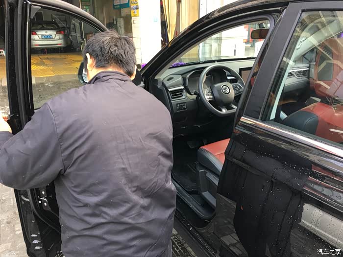 洗车的时候没法开车车门,有时间再和大家好好聊聊内饰吧!当你打开车门坐到车里,给人的第一感觉就是朴实和低调,我选择的是双色的内饰,红黑搭配,给人低调不是年轻与运动,虽然低调,但不失豪华感,朴实和低调是因为他没有花哨的装饰,豪华是因为他们的设计有意的在细节上让T5L更加的贴近豪华,看上去让你觉得很舒服。仪表台大面积的软包,缝线看上去也比较凸显高级感。皮质的方向盘手感很好,座椅的包裹性不错,皮质手感也非常显高档。