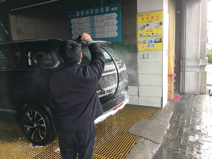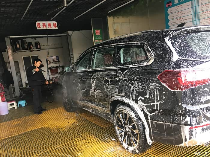由于刚下完雨,过来洗车的比较多,跑了好几个地方才找到不用排队的地方。