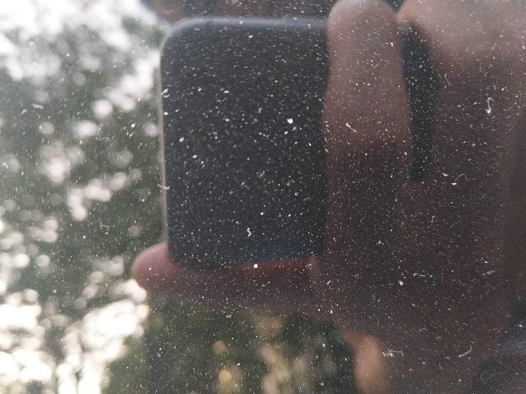 虽然远处看不明显,但是,一旦对着阳光,玻璃上全是麻子点,晚上会车的时候就更惨了。