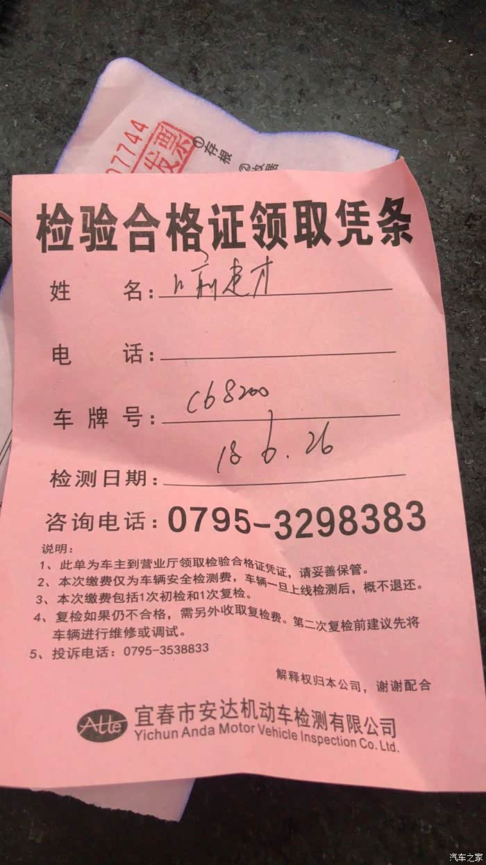 过了一会,休息室里通知我的车子检测完成,可以开车走人了,在前台填了一个表格,第二天就会把行驶证送上门,服务真的不错