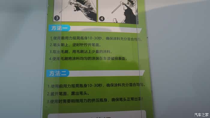 为什么补漆笔上贴的使用方法和说明书不一样呢?