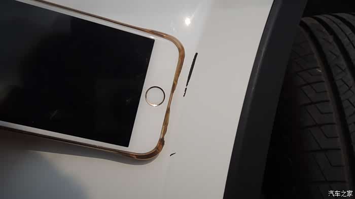 大约4cm的划痕,我用iPhone6对比一下尺寸。
