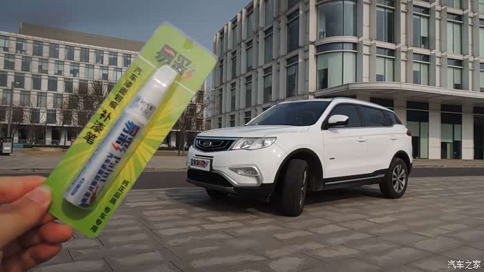 不是每一款白车都是同一种白,博越的汉玉白虽说是普通漆,但为了避免补漆笔的色差,还是专车专用的好。我的博越前保险杠左前侧有一道4cm左右的划痕,在2米左右距离观察清晰可见。