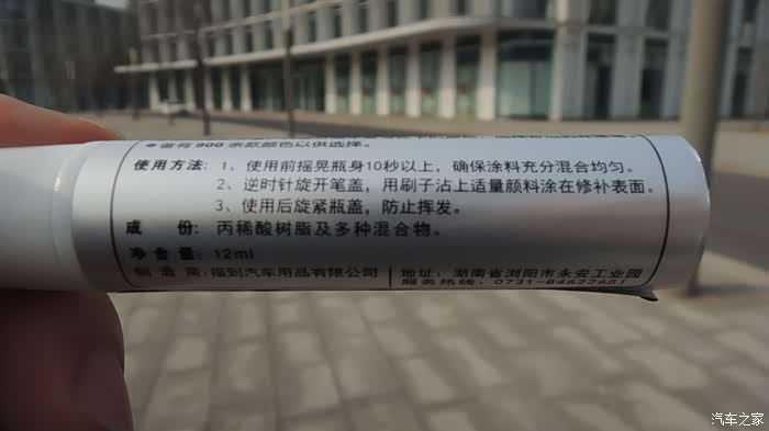 补漆笔尺寸不大,内有12ml液体漆。使用前需用力摇晃瓶身10-30秒,确保涂料充分混合均匀。使用方法有两种。【方法一】使用毛刷蘸取少量涂料均匀涂抹在车漆破损表面。【方法二】用力挤压瓶身,使用笔头涂抹细微车漆破损表面。对于方法的选择,取决于漆面破损面积。操作简单易行,注意涂抹时要尽量均匀尽量薄,面积尽量小。技术难度:☆☆☆☆☆