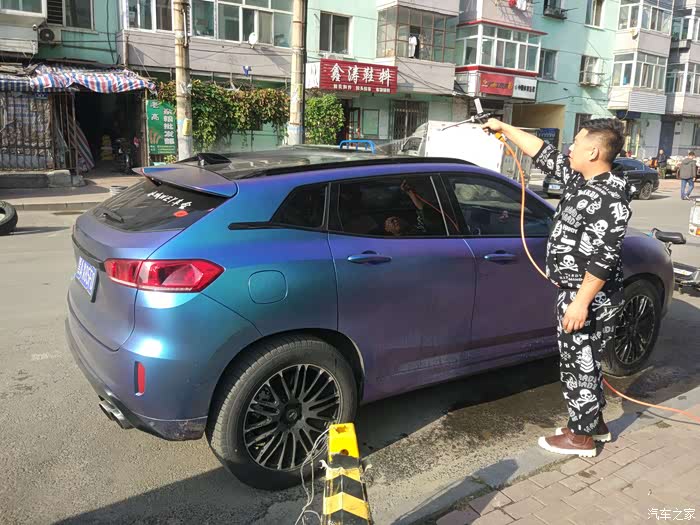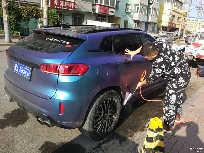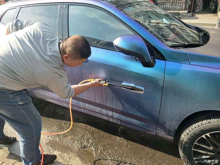 我也就用了两下,手感还没找到,我就沦为了拿着抹布的洗车工,团子哥冲水,我用毛巾擦车!!!!行啊,有人帮着总比就自己干好啊!哈哈哈