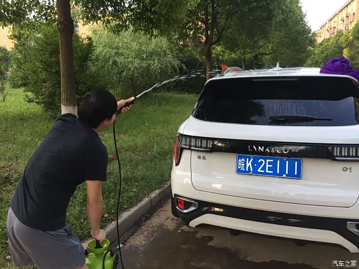 周六依然是在学习中度过,全是因为之前工作的行业不景气,所以在28岁的年纪毅然决然的选择了改行。隔行如隔山,之后付出比别人更多的努力才能跟上时代的步伐。正像领克一样,不要害怕你不行,只要你敢与实践下一个成功者就是你。我觉得领克就敢于走个性路线,所以注定会成功。我的领克01是白色的。如果稍微脏一点就去洗车店清洗。所以我就萌生了自己动手洗车的想法,毕竟自己动手稍微洗一洗还是可以省去一笔钱的。在选择洗车方式的时候,我有迷茫过,徘徊了很久最终选择了买个洗车神器。当然可以选择不要那么多的配件毕竟不是所有的都用的上。话不多说,接下来说一下我洗车的步骤:1.拆开快递盒,看到产品后还是很满意的,毕竟不是那种质量很差的东西,稍微看了一下卖家的使用视频之后就开始干活了。2.装水,建议装干净的水,像河里的水就不要用了,不清楚有什么脏东西或者腐蚀车漆的成分。由于我家在六楼,所以我去了朋友家二楼装的水。建议可以增加一个引水管,不然不好装水啊!后来在洗手间才把水装好。3.打湿车身,装水之后,按照安装说明水把神器安装完成,先把车身全部打湿。4.喷洗车香波。这个步骤如果是随便洗一洗可以省去,毕竟香波不是那么容易清洗干净的。5.擦抹车身,套餐里带的海绵非常好用。6.清水冲洗车身。7.搽干车身。总结:香波使用的时候没有研究清楚具体怎么使用,所以使用的不是很成功,这个桶是16L的,本次洗车一桶没有够,用了两桶水,以后不用香波我想一桶水也就够了。感受:由于是第一次使用所以费时比较久,不过第一次是最有乐趣的,好几个朋友一起玩,感觉很有趣。在小区里面洗车好多人都觉得新鲜,围观的人还是不少的。担忧:因为在小区里面洗车,会弄很多水在地上,不知道下次呗物业的人看到会不会阻止我!