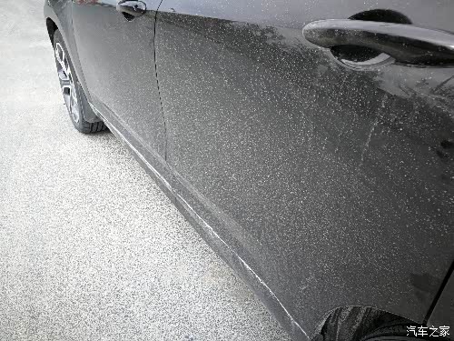 看着侧面,全是沙粒,擦一下就划伤车漆