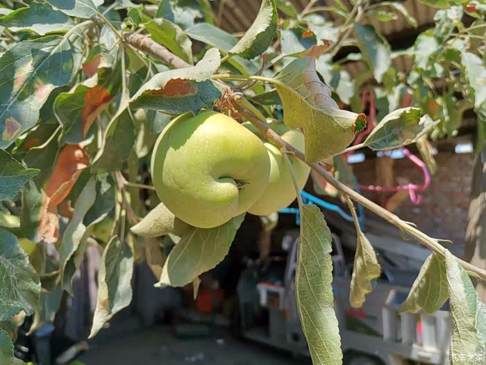 家里种的苹果树,没剪过枝,长得歪七扭八!