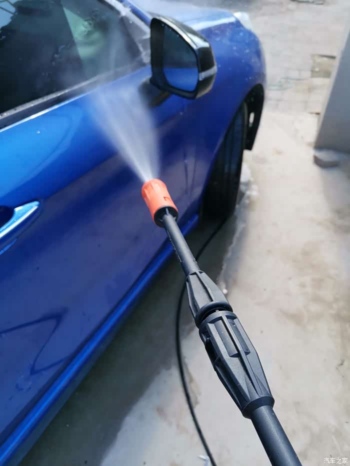 照片看不出车脏。这是出水正常状态,说实话,压力很大,但是不如洗车店的水压大,家用够了,而且很省水!