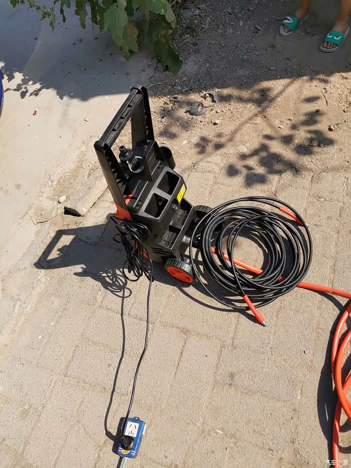 插电源,链接上进水口和出水口!等待洗车机自动打压!这就是我说的洗车机自己的因素!只有每个管件都链接正确,不漏气才能使用,但是此次洗车两次无压力自动停机,再次等待正常工作需要很长时间,而且明显感觉马达功率在减弱,不正常出水。这就是问题,很让我头疼!