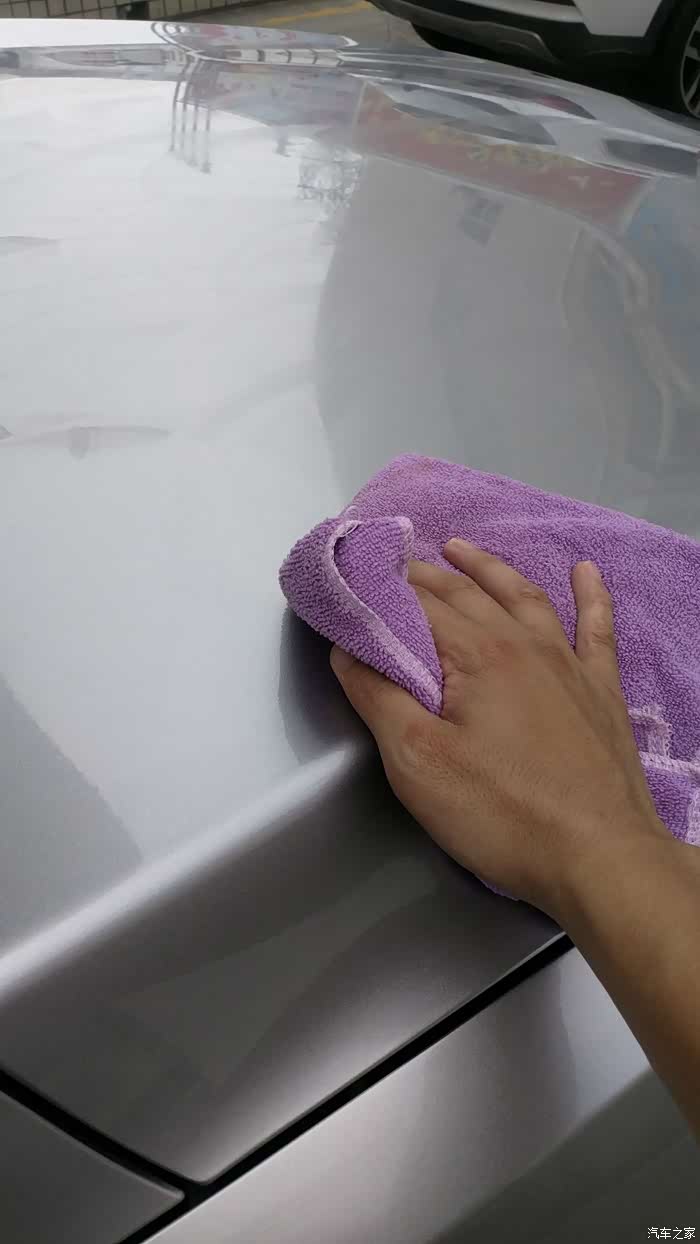整个车身都打过一遍蜡了,打完一圈,最开始打蜡的地方蜡就干了,待蜡干完之后就可以用擦蜡毛巾略微使点劲,把残蜡给擦掉