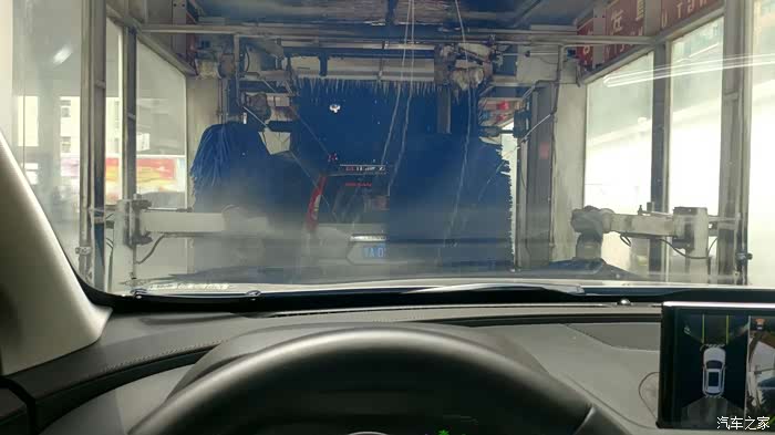 用洗车机先大致冲下外观,洗车机挺鸡肋的,车后窗基本刷不到······