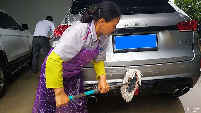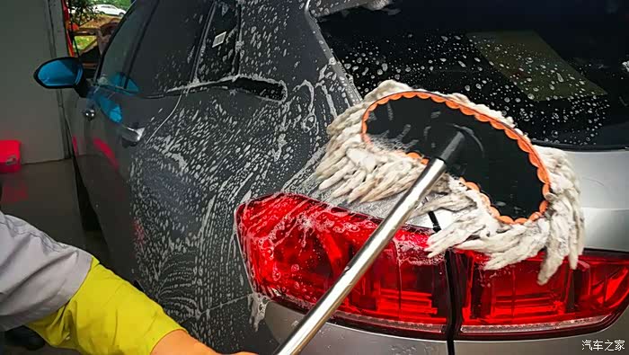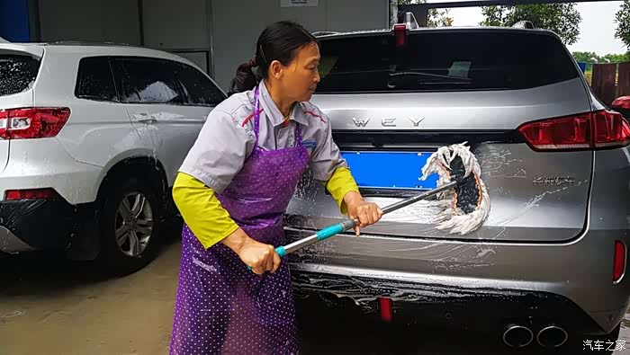 拖把用上了,打泡沫。。。大姐,你小心点,别把车漆划了