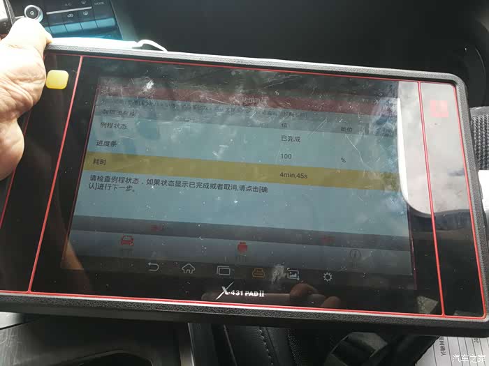 到了4S后,工作人员立马用蓝牙电脑进行检测,结果是ACC雷达水平位置有偏离,要重新调试。人家拿出一个水平仪卡在探头上